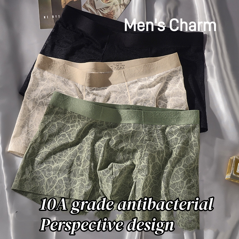 3 Pcs Antibacterial Camellia Scented Men's Ice Silk Boxer Briefs