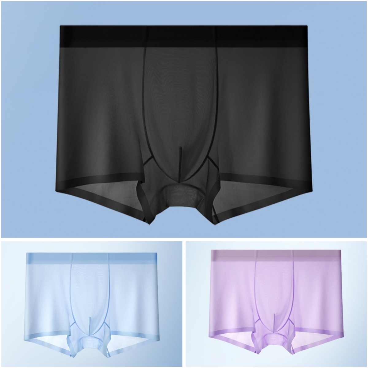 3 Pcs Large Pouch Thin Transparent Men's Underwear